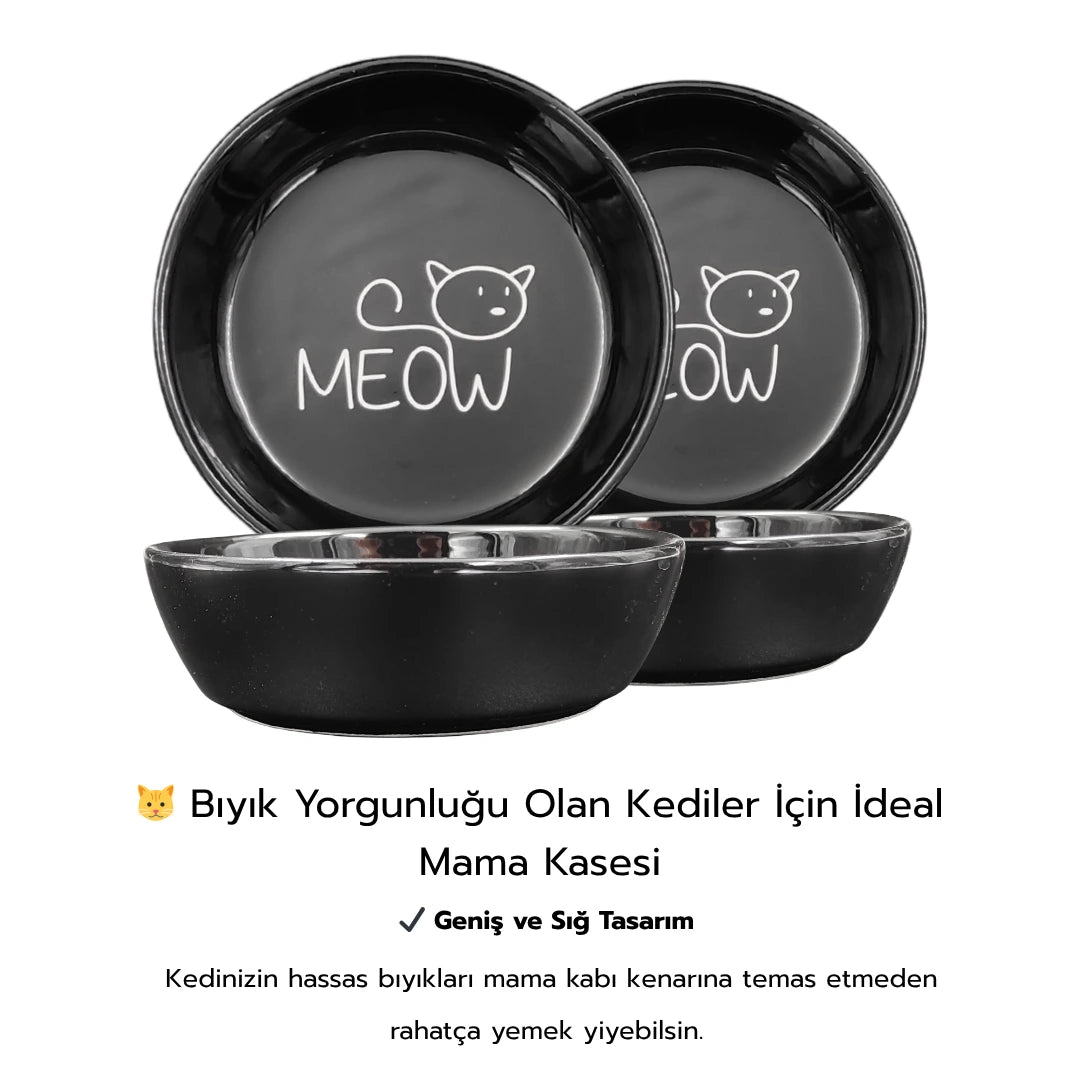 Kedinizin beslenme zamanlarını hem şık hem de hijyenik hale getiren bu mama kabı, özgün “MEOW” baskısı ile dikkat çekiyor. Seramik kaplar sayesinde hem su hem mama hijyenik kalır, kolay temizlenir.