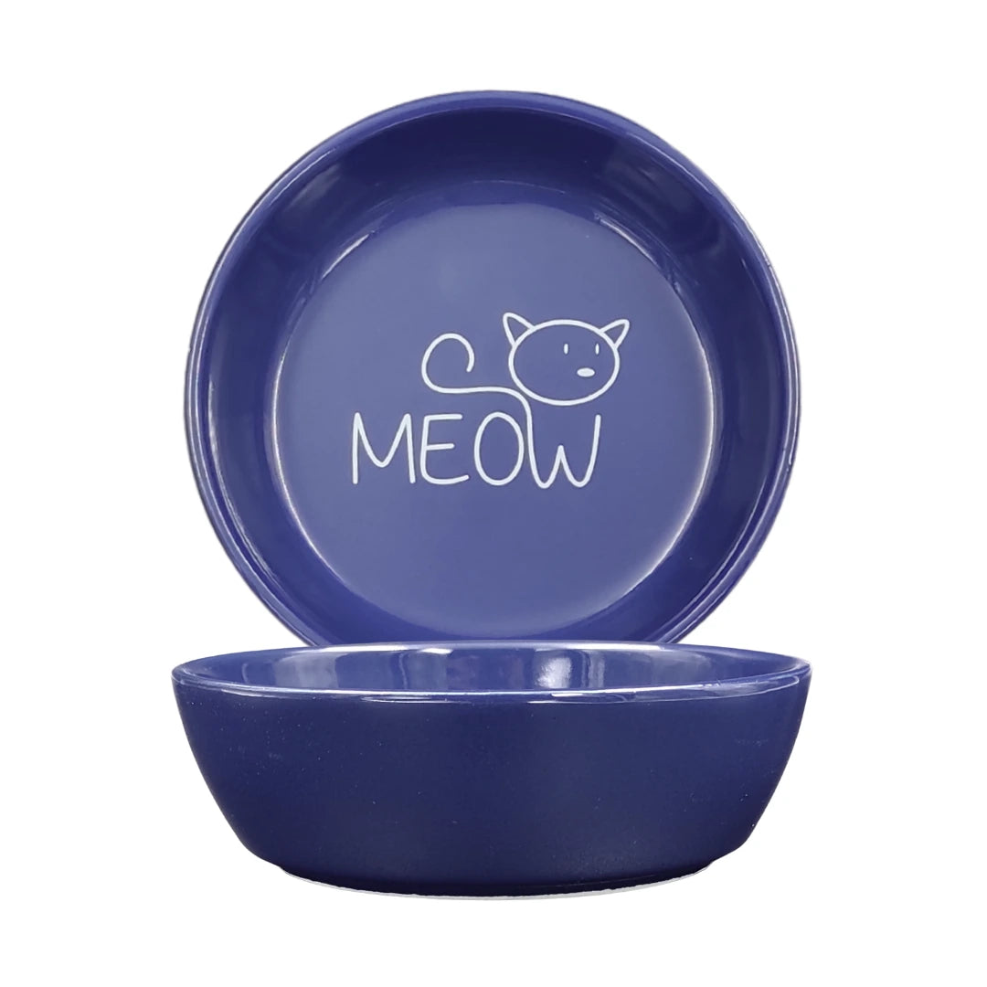 Seramik Kedi Mama ve Su Kabı | MEOW Baskılı 1 ADET Lacivert KASE